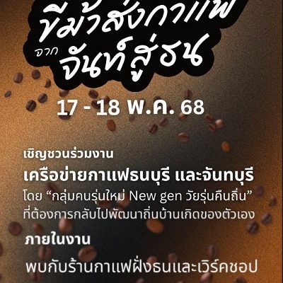 ICS Lifestyle Complex ตรงข้ามไอคอนสยาม ชวนเปิดโลกกาแฟฝั่งธนบุรีแบบลึกซึ้ง ที่งาน “ขี่ม้าส่งกาแฟ จากจันท์สู่ธน” งานกาแฟสุดสร้างสรรค์โดยเครือข่ายกาแฟธนบุรีและจันทบุรี ที่จะยกขบวนกาแฟเมืองจันท์และฝั่งธนมาให้คนรักกาแฟได้สัมผัสความหอมกรุ่น ลิ้มรสละมุน พร้อมบอกเล่าเรื่องราวน่าสนใจเกี่ยวกับกาแฟไทย ทั้งด้านสุขภาพ การออกแบบ จนถึงอนาคตธุรกิจกาแฟ ผ่านเวทีเสวนาเข้มข้นจากคนจริงในวงการ นับเป็นอีกหนึ่งงานที่นำเสนอกาแฟไทยอย่างรอบด้าน หลากมิติ ให้คอฟฟี่เลิฟเวอร์ได้อินกับกลิ่นและรสของเครื่องดื่มแก้วโปรดมากกว่าที่เคย ณ Event Space ชั้น M