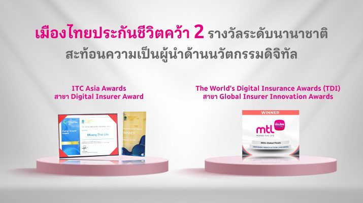 เมืองไทยประกันชีวิต ตอกย้ำความเป็นผู้นำด้านนวัตกรรมดิจิทัลในธุรกิจประกันภัย ด้วยการคว้า 2 รางวัลสำคัญระดับนานาชาติ ได้แก่ รางวัล ITC Asia Awards 2024 สาขา Digital Insurer Award และ รางวัล The World’s Digital Insurance Awards 2024 สาขา