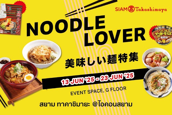 สยาม ทาคาชิมายะ ห้างสรรพสินค้าญี่ปุ่นขนานแท้แห่งเดียวในประเทศไทย ณ ไอคอนสยาม เอาใจคนรักเส้น จัดงาน “Noodle Lover” มหกรรมที่รวมความอร่อยของเมนูเส้นหลากหลายสไตล์ โดยเฉพาะอย่างยิ่ง สุดยอดเส้นและเมนูต้นตำรับจากญี่ปุ่นแท้ๆ พร้อมเสริมทัพด้วยเมนูเส้นยอดนิยมจากไทย เกาหลี และตะวันตก ให้คุณได้อิ่มอร่อยครบจบในที่เดียว! ระหว่างวันที่ 13 – 23 มิถุนายน 2568 ณ ชั้น