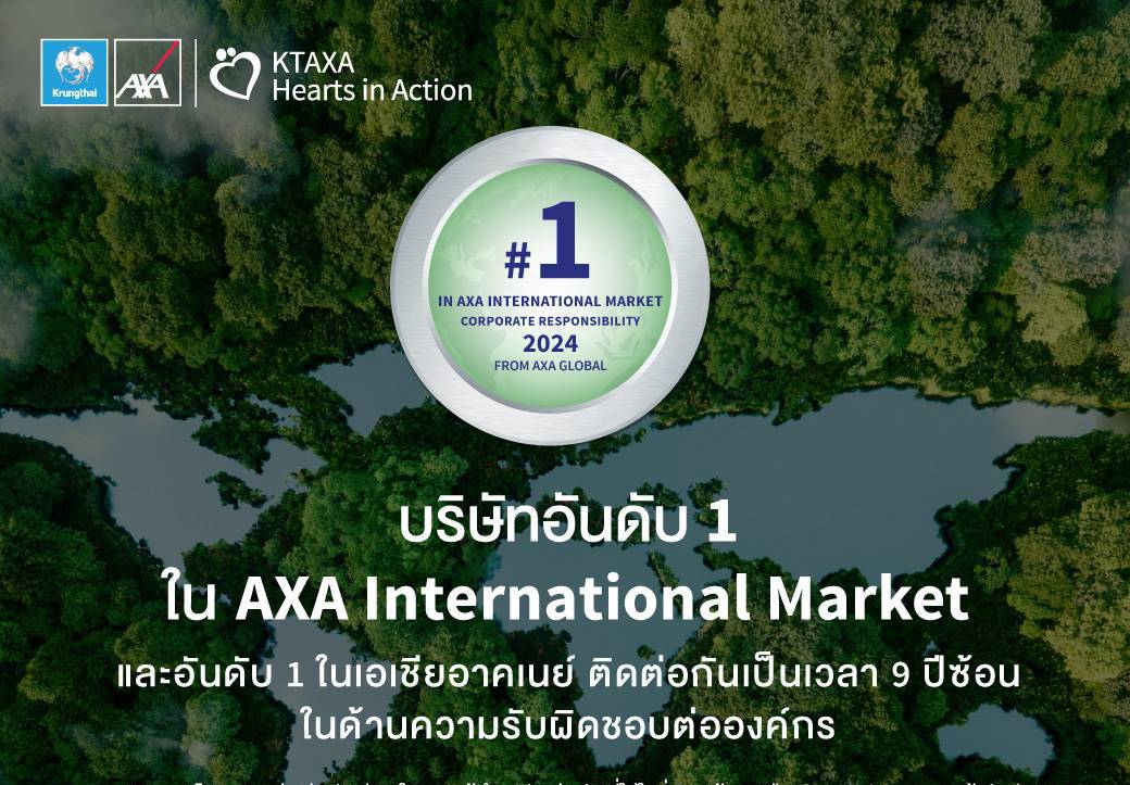 กรุงไทย – แอกซ่า ประกันชีวิต คว้าอันดับ 1 ใน AXA International Market  และอันดับ 1 ในเอเชียอาคเนย์ต่อเนื่อง 9 ปีซ้อน ในด้านความรับผิดชอบต่อองค์กร (CR)