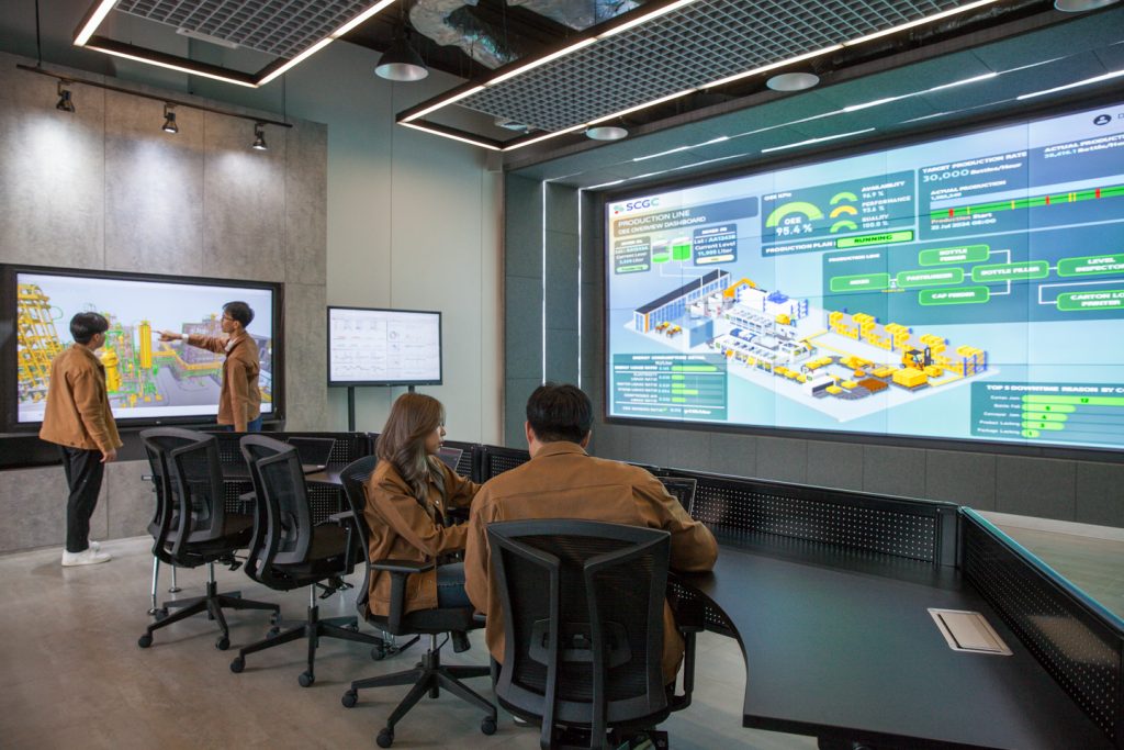 นอกจากนี้ ได้เริ่มใช้ AI ช่วยลดขั้นตอนออกแบบและพัฒนาสินค้าใหม่ เอสซีจี เดคคอร์ ใช้ระบบอัตโนมัติเคลื่อนย้ายชิ้นงานกระเบื้องและสุขภัณฑ์ในกระบวนการผลิตและบรรจุ รวมทั้งใช้ AI ช่วยออกแบบสินค้า จำลองกระบวนการก่อนผลิตจริง ตรวจสอบคุณภาพ รวมถึงบริหารคลังสินค้า และ เอสซีจีซี ใช้หุ่นยนต์บริหารจัดการโรงงาน อาทิ โรงงานนวพลาสติกอุตสาหกรรมที่ผลิตท่อและข้อต่อ PVC รวมถึงผลิตภัณฑ์สำเร็จรูปจาก PVC มีสัดส่วนการใช้หุ่นยนต์ (Robot Density) เทียบเท่าระดับ Best in Class ของโลก และใช้เทคโนโลยีดิจิทัลและ AI เพื่อลดระยะเวลาในการพัฒนาพอลิเมอร์ รวมทั้ง การลดต้นทุนบริหารจัดการ จากการรวมศูนย์การผลิตของโรงงานที่มีความซ้ำซ้อน
