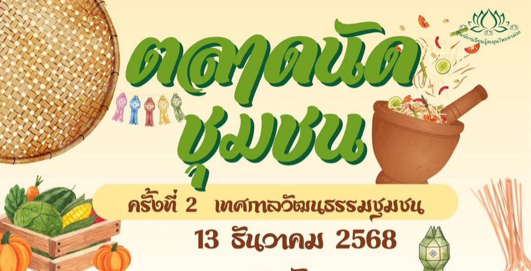ผู้ที่สนใจ งาน “ตลาดนัดชุมชน – เทศกาลวัฒนธรรมชุมชน ครั้งที่ 2” เปิดให้ประชาชนเข้าร่วม ฟรี ในวันที่ 13 ธันวาคม 2568 ณ สวนสมุนไพรชีววิถีท่าม่วง จังหวัดกาญจนบุรี โดยคาดว่าจะเป็นงานที่ช่วยให้ผู้ร่วมงานได้พบปะ ทำกิจกรรม และอุดหนุนสินค้าท้องถิ่นในบรรยากาศที่เป็นกันเองของชุมชน