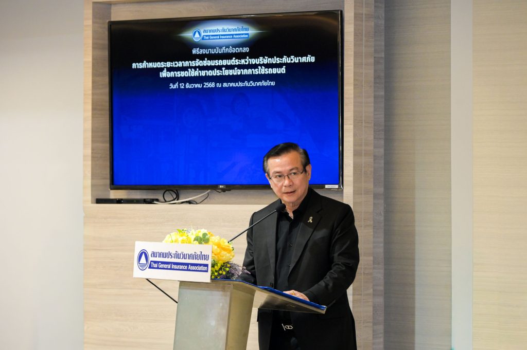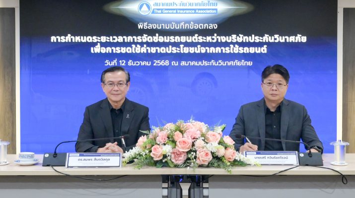 สมาคมประกันวินาศภัยไทยจัดพิธีลงนามบันทึกข้อตกลง “กรอบระยะเวลาการจัดซ่อมรถยนต์ระหว่างบริษัทประกันวินาศภัย เพื่อการชดใช้ค่าขาดประโยชน์จากการใช้รถ” เมื่อวันที่ 12 ธันวาคม 2568 โดยมีบริษัทประกันวินาศภัยเข้าร่วมลงนามจำนวน 32 บริษัท ถือเป็นความร่วมมือครั้งสำคัญของอุตสาหกรรมประกันภัยไทยในการสร้างมาตรฐานกลางด้านการซ่อมรถยนต์ เพื่อให้การชดเชยค่าขาดประโยชน์จากการใช้รถมีแนวทางที่ชัดเจน เที่ยงตรง ช่วยลดการร้องเรียน เสริมประสิทธิภาพการจ่ายค่าสินไหมทดแทน และสร้างความเชื่อมั่นแก่ประชาชนผู้ใช้รถทั่วประเทศ