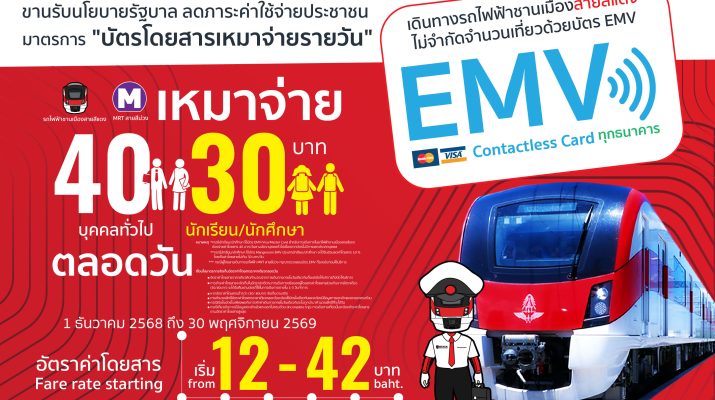 รฟฟท. ดำเนินมาตรการ “บัตรโดยสารเหมาจ่ายรายวัน” สูงสุด ไม่เกิน 40บาท ตามนโยบายรัฐบาล เริ่ม 1ธ.ค. 68