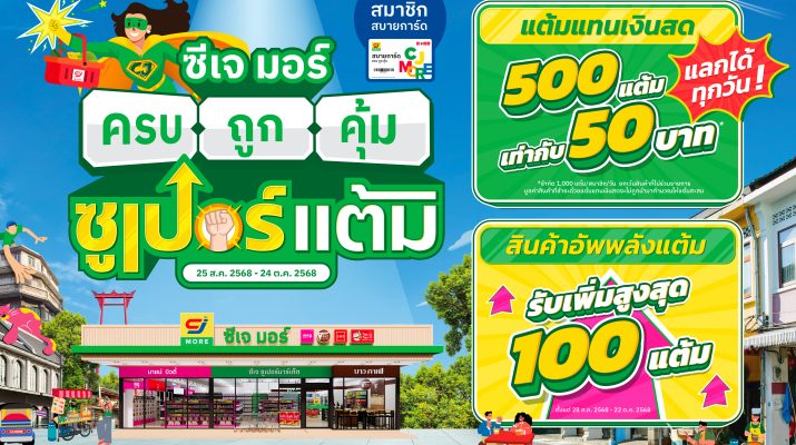 ซีเจ มอร์ ปล่อยหมัดเด็ด! แคมเปญ “ซีเจ มอร์ ครบ ถูก คุ้ม ซูเปอร์แต้ม”สมาชิกสบายการ์ดแลกแต้มแทนเงินสดได้ทุกวัน พร้อมสินค้าอัพพลังแต้มสุดคุ้ม