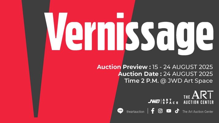 ในโลกของศิลปะ “Vernissage” มีรากศัพท์จากภาษาฝรั่งเศส แปลว่า “การเคลือบเงา” ซึ่งเป็นขั้นตอนสุดท้ายที่ศิลปินลงสารเคลือบเงา (วานิช) บนผลงานก่อนเผยแพร่สู่สายตาสาธารณชน ต่อมาคำนี้ได้กลายเป็นธรรมเนียมในแวดวงศิลป์ หมายถึง การเปิดให้ชมผลงานก่อนนิทรรศการ “แต่เดิม ศิลปินมักใช้โอกาสพิเศษนี้ร่วมกับเหล่านักสะสมและแขกคนสนิทในวันก่อนเปิดนิทรรศการ ให้เข้าชมผลงานที่ยังไม่ถูกปิดตราความหมาย เพื่อให้ผู้ซึ่งเข้าถึงนัยอันถ่องแท้เท่านั้นที่จะได้สัมผัสกับลมหายใจของศิลปะก่อนใคร…” ด้วยแรงบันดาลใจจากความหมายและความสำคัญของคำนี้ The Art Auction Center สถาบันประมูลศิลปะอันดับ 1 ของไทย จึงได้จัดนิทรรศการและการประมูลสุดเอ็กซ์คลูซีฟภายใต้ชื่อ “Vernissage”