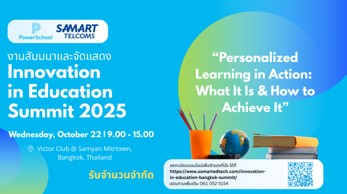บริษัท สามารถเทลคอม จำกัด (มหาชน) ผู้นำด้านเทคโนโลยีสื่อสาร สารสนเทศ และดิจิทัลโซลูชันครบวงจร ร่วมกับ PowerSchool ผู้นำด้านเทคโนโลยีการศึกษาระดับโลกจากสหรัฐอเมริกา จัดงานสัมมนาวิชาการ และแสดงนวัตกรรมการศึกษา “PowerSchool Innovation in Education Summit 2025” ภายใต้แนวคิด “Personalized Learning in Action: What