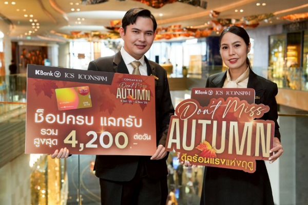 ไอคอนสยาม และไอซีเอส ตอกย้ำความเป็นจุดหมายปลายทางของนักท่องเที่ยวทั่วโลก ต้อนรับโค้งสุดท้ายปลายปีด้วยโปรโมชันในแคมเปญ “Don’t Miss Autumn!” เอาใจสายช้อปด้วยดีลร้อนแรงที่สุดแห่งฤดูกาล มอบสิทธิพิเศษให้สมาชิก ONESIAM ที่ใช้จ่ายผ่านบัตรเครดิตกสิกรไทย ครบตามยอดที่กำหนด รับทันทีของรางวัลสุดเอ็กซ์คลูซีฟ พร้อม Siam Gift Card มูลค่าสูงสุด 3,000 บาท รวมกว่า 3,600 รางวัล ตั้งแต่