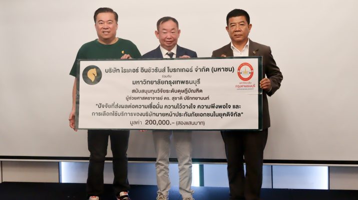 “ไรเดอร์ อินชัวรันส์ โบรกเกอร์” จับมือ ม.กรุงเทพธนบุรี มอบทุนวิจัย 2 แสนบาท พัฒนาองค์ความรู้ด้านประกันภัยยุคดิจิทัล มุ่งสู่ระบบ InsurTech อย่างยั่งยืน