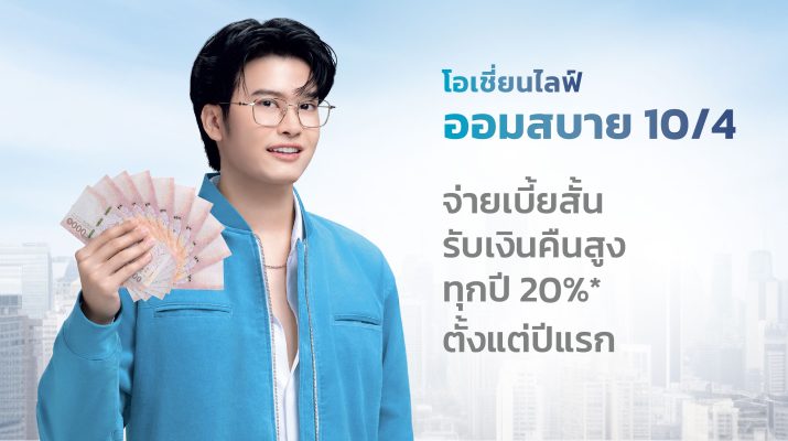 OCEAN LIFE ไทยสมุทร ส่งตัวช่วยลดหย่อนภาษีสุดคุ้ม “โอเชี่ยนไลฟ์ ออมสบาย 10/4” ที่ให้มากกว่าความคุ้มครอง พร้อมรับเงินคืนสูง 20% ตั้งแต่ปีแรก!!