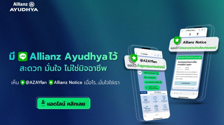 อลิอันซ์ อยุธยา ประกันชีวิต เดินหน้ายกระดับประสบการณ์การสื่อสารกับลูกค้าในยุคดิจิทัล เพิ่มบริการผ่าน LINE ใน 2 ช่องทางหลัก ได้แก่ LINE Official Account บัญชีทางการ @AZAYfan และ LINE Allianz Notice เพื่อมอบความสะดวก รวดเร็ว มั่นใจ และปลอดภัยในการเข้าถึงข้อมูลกรมธรรม์ สิทธิประโยชน์