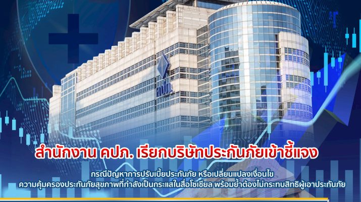 คปภ. เรียกบริษัทประกันภัยเข้าชี้แจง กรณีปัญหาการปรับเบี้ยประกันภัย หรือเปลี่ยนแปลงเงื่อนไขความคุ้มครองประกันภัยสุขภาพที่กำลังเป็นกระแสในสื่อโซเชียล พร้อมย้ำต้องไม่กระทบสิทธิผู้เอาประกันภัย