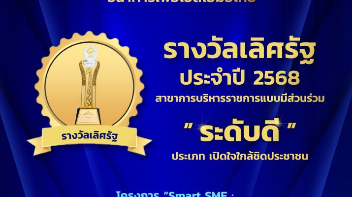 ธนาคารพัฒนาวิสาหกิจขนาดกลางและขนาดย่อมแห่งประเทศไทย (ธพว.) หรือ SME D Bank โดยนายเขมชาติ อภิรัชตานนท์ รองกรรมการผู้จัดการ พร้อมผู้บริหาร และพนักงานธนาคาร เป็นตัวแทนเข้ารับรางวัลเลิศรัฐ ประจำปี 2568 จากสำนักงานคณะกรรมการพัฒนาระบบราชการ (ก.พ.ร.) สาขาการบริหารราชการแบบมีส่วนร่วม ประเภทเปิดใจใกล้ชประชาชน ระดับดี จากโครงการ “Smart SME :