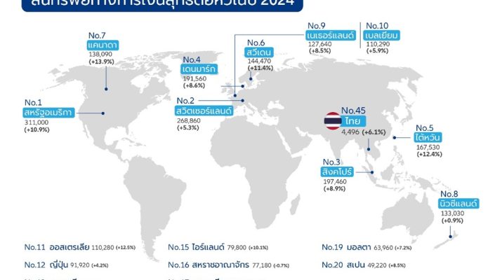 กลุ่มอลิอันซ์ เปิดตัว “Global Wealth Report” ฉบับที่ 16 วิเคราะห์สถานะสินทรัพย์และหนี้สินของครัวเรือนในเกือบ 60 ประเทศ ทั่วโลกอย่างละเอียด เศรษฐกิจโลกก้าวต่อไปอย่างแข็งแกร่ง ปี 2024 เป็นอีกหนึ่งปีที่เศรษฐกิจโลกเติบโตอย่างมั่นคง และเป็นปีทองของสินทรัพย์การเงินภาคครัวเรือน โดยเพิ่มขึ้น 8.7% สูงกว่าปี 2023 ที่ 8.0% ณ สิ้นปี 2024 มูลค่าสินทรัพย์การเงินรวมทั่วโลกแตะ 269 ล้านล้านยูโร ซึ่งเป็นสถิติสูงสุดใหม่ อย่างไรก็ดี เมื่อเทียบกับกิจกรรมทางเศรษฐกิจ สัดส่วนสินทรัพย์การเงินต่อเศรษฐกิจอยู่ที่ 283% ซึ่งเท่ากับระดับปี 2017 การเติบโตของสินทรัพย์ที่เกิดขึ้นในสหรัฐฯ ตลอด 10 ปีที่ผ่านมา สินทรัพย์การเงินของครัวเรือนสหรัฐฯ เติบโตสอดคล้องกับค่าเฉลี่ยโลก แต่ในปี 2024 กลับเติบโต “สูงกว่า” ค่าเฉลี่ยโลกอย่างชัดเจน ตรงกันข้ามกับยุโรปตะวันตกและญี่ปุ่นที่เติบโต “ต่ำกว่า” ค่าเฉลี่ยโลก มากกว่า 2 จุดเปอร์เซ็นต์ และ เกือบ 4 จุดเปอร์เซ็นต์ ต่อปีตามลำดับ ลูโดวิค