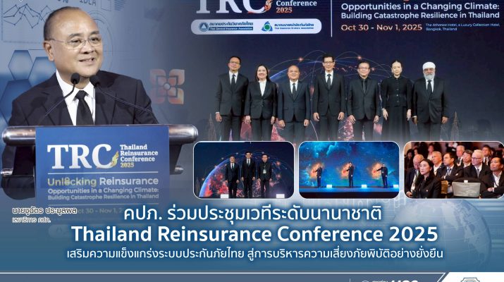 เมื่อวันที่ 30 ตุลาคม 2568 ที่ผ่านมา สำนักงานคณะกรรมการกำกับและส่งเสริมการประกอบธุรกิจประกันภัย (สำนักงาน คปภ.) เข้าร่วมการประชุม Thailand Reinsurance Conference (TRC) 2025 ซึ่งถือเป็นงานประชุมด้านประกันภัยต่อที่ยิ่งใหญ่ที่สุดแห่งปี จัดโดยสมาคมประกันวินาศภัยไทยร่วมกับสมาคมนายหน้าประกันภัยไทย ภายใต้แนวคิด “Unlocking Reinsurance Opportunities in a Changing Climate