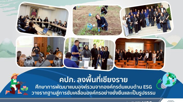 ตามที่สำนักงานคณะกรรมการกำกับและส่งเสริมการประกอบธุรกิจประกันภัย (สำนักงาน คปภ.) ดำเนินโครงการ “ขับเคลื่อนการพัฒนาองค์กรอย่างยั่งยืน (ESG)” ให้แก่บุคลากรมาระยะหนึ่ง ผ่านการจัดอบรมความรู้ด้าน ESG เพื่อส่งเสริมให้พนักงานทุกคนมีบทบาทในการขับเคลื่อนสำนักงาน คปภ. ไปสู่การเป็นองค์กรต้นแบบด้านการพัฒนาองค์กรอย่างยั่งยืน และวางรากฐานความเข้าใจร่วมกันในช่วงที่ผ่านมา ทั้งนี้ เพื่อให้การพัฒนาองค์ความรู้ด้าน ESG มีความสมบูรณ์และเชื่อมโยงกับการปฏิบัติจริง สำนักงาน คปภ. เห็นความสำคัญของการศึกษาดูงานจากหน่วยงานที่มีผลงานโดดเด่นและได้รับการยอมรับในวงกว้างด้านการพัฒนาอย่างยั่งยืน (ESG) โดยได้จัดกิจกรรมศึกษาดูงานด้าน ESG ในพื้นที่จังหวัดเชียงราย