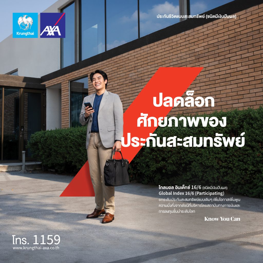 บริษัท กรุงไทย-แอกซ่า ประกันชีวิต จำกัด (มหาชน) ตอกย้ำจุดยืนการผู้นำธุรกิจประกันชีวิตและสุขภาพ เปิดตัวผลิตภัณฑ์ใหม่ “โกลบอล อินเด็กซ์ 16/6 (ชนิดมีเงินปันผล)” ประกันชีวิตประเภทสะสมทรัพย์ที่มุ่งเน้นการยกระดับการวางแผนการเงินที่ให้ผลตอบแทนแบบการันตี เพื่อสนับสนุนให้ทุกคนได้วางแผนทางการเงินที่เติบโตอย่างมั่นคง กระจายการลงทุนในยุคที่เศรษฐกิจผันผวน และรับสิทธิในการลดหย่อนภาษี