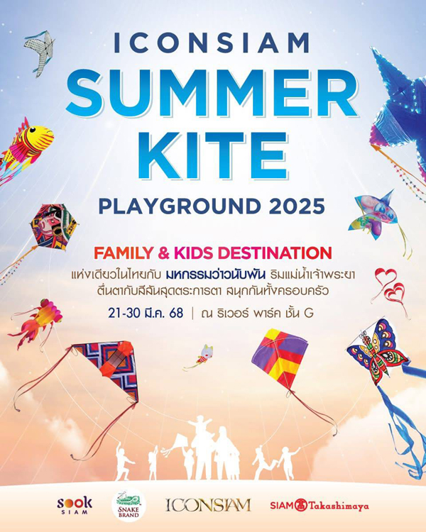 ไอคอนสยาม แลนด์มาร์กระดับโลกริมแม่น้ำเจ้าพระยา ตอกย้ำความเป็น Family & Kids Destination จุดหมายปลายทางแห่งความสนุกและความสุขของทุกคนในครอบครัว ด้วยการจัดงาน “ICONSIAM SUMMER KITE PLAYGROUND 2025” มหกรรมว่าวนับพันริมแม่น้ำเจ้าพระยา ตื่นตาตื่นใจกับว่าวหัวใจลายธงชาติขนาดใหญ่หาชมยาก และว่าวหมียักษ์สูง 4 เมตร ที่ยกขบวนมาสร้างสีสันถึง 8 ตัว มากที่สุดเท่าที่เคยมี มาให้ชมกันที่ไอคอนสยามเป็นที่แรก พร้อมพบกับว่าวไทยโบราณ ว่าวแฟนซีไม่ซ้ำใคร โชว์ว่าว LED สุดตระการตา และร้านจำหน่ายว่าวนานาชนิดที่ขนมาให้เลือกอย่างจุใจ มาเพลินได้ทุกวัย สนุกได้ทุกเจเนอเรชัน ตั้งแต่วันที่ 21-30 มีนาคม 2568 ณ ริเวอร์ พาร์ค ชั้น G ไอคอนสยาม