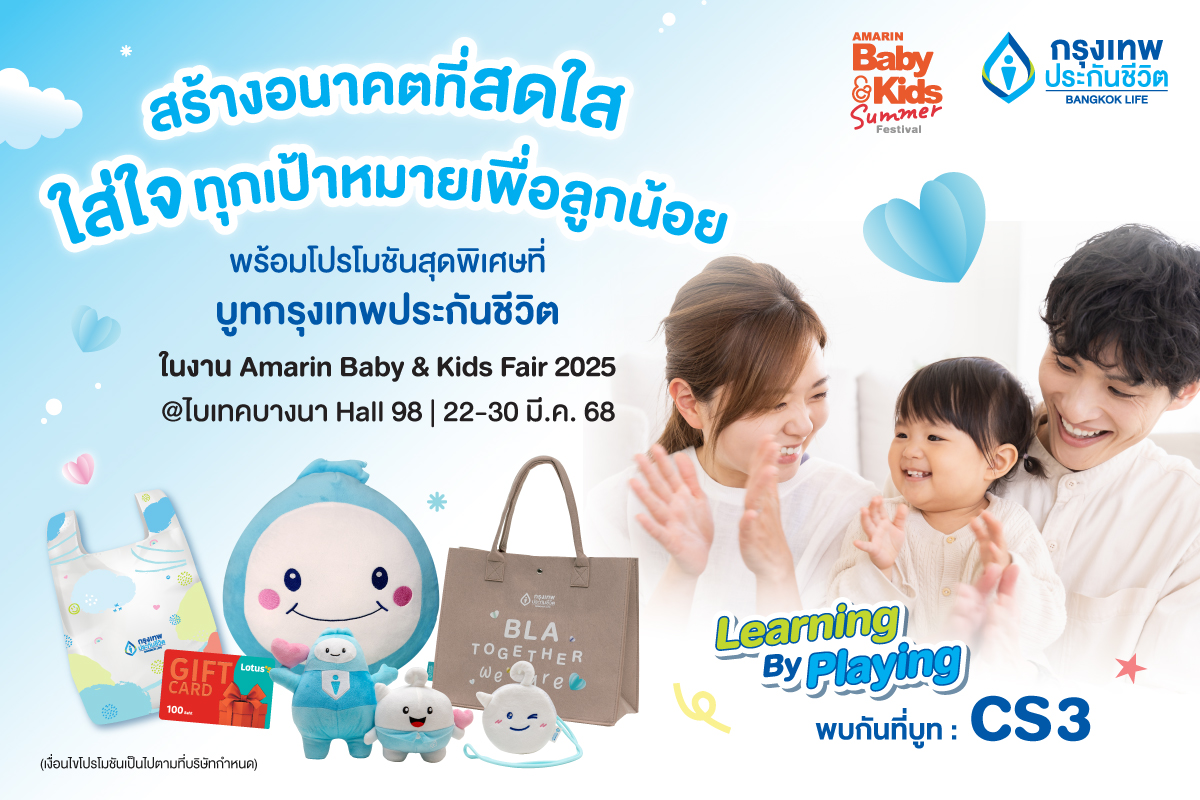 ข่าวดีสำหรับคุณพ่อคุณแม่ กับงานเพื่อลูกน้อยแห่งปี Amarin Baby & Kids Fair 2025 (Summer Festival) เตรียมพบกับ กรุงเทพประกันชีวิต ที่มาพร้อมแบบประกันดี ๆ ทั้ง กรุงเทพ สมาร์ท คิดส์ แวลู เฮลธ์ คิดส์ พรีเมียร์ แฮปปี้ เฮลธ์ พรีเมียร์ ที่ถูกออกแบบมาด้วยความใส่ใจ ตอบโจทย์ทุกคนในครอบครัว ทั้งแผนความคุ้มครองด้านสุขภาพ ค่ารักษาพยาบาล และการออมเงินเพื่อเป็นทุนการศึกษาให้ลูกรัก พบกัน ระหว่างวันที่ 22 – 30 มีนาคม 2568 ที่บูท CS3 ฮอลล์ 98 ศูนย์แสดงสินค้าและนิทรรศการ ไบเทคบางนา