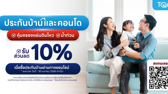 นอกจากนี้แผนประกันภัยบ้านที่ซื้อผ่าน TQM มีการเพิ่มความคุ้มครองภัยธรรมชาติ ที่เพิ่มเติมจากความคุ้มครองมาตรฐาน (ความคุ้มครองมาตฐาน 4 ภัยธรรมชาติคุ้มครองรวมกัน ไม่เกิน 20,000 บาท) รวมถึง ความเสียหายต่อเครื่องใช้ไฟฟ้า และภัยจากการโจรกรรม เพื่อช่วยบรรเทาความเสียหายที่อาจเกิดขึ้นโดยไม่คาดคิด พิเศษ! สำหรับลูกค้าที่ซื้อประกันภัยบ้านผ่านช่องทางออนไลน์ รับส่วนลดทันที 10% เมื่อซื้อภายใน 30 เมษายน 2568 นอกจากนี้ยังสามารถรับคูปองส่วนลด หรือ CODE ส่วนลด สำหรับใช้ซื้อสินค้ากับร้านค้าที่ร่วมรายการผ่าน Application TQM 24 ได้อีกด้วย หากลูกค้าสนใจสามารถลงทะเบียนเช็กเบี้ยประกันได้ที่ >> https://bit.ly/4hXNqMR หรือสอบถามข้อมูลเพิ่มเติมได้ที่ Call Center โทร 1737 ตลอด 24 ชั่วโมง