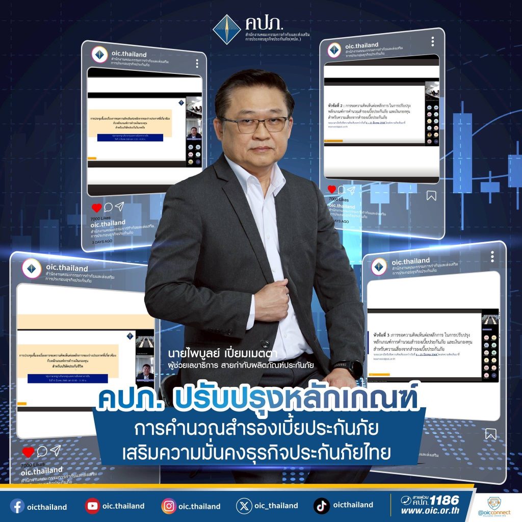 “สำนักงาน คปภ. เชื่อมั่นว่าการปรับปรุงหลักเกณฑ์ในครั้งนี้จะเป็นก้าวสำคัญในการเสริมสร้างเสถียรภาพของธุรกิจประกันภัย ในประเทศไทย พร้อมทั้งสร้างความมั่นใจให้แก่ผู้เอาประกันภัย และสนับสนุนการเติบโตของอุตสาหกรรมประกันภัยอย่างยั่งยืน ทั้งนี้ การพัฒนาแนวทางดังกล่าวยังช่วยให้บริษัทประกันภัยสามารถวางแผนเชิงกลยุทธ์ได้ดียิ่งขึ้น เพิ่มความสามารถในการบริหารจัดการความเสี่ยง และส่งเสริมการแข่งขันอย่างเป็นธรรมในตลาดประกันภัย โดยสำนักงาน คปภ. พร้อมเดินหน้าพัฒนามาตรฐานด้านการกำกับดูแลอย่างต่อเนื่อง เพื่อให้ธุรกิจประกันภัยไทยมีความมั่นคง โปร่งใส และสามารถรองรับความเปลี่ยนแปลงในอนาคตได้อย่างมีประสิทธิภาพ ตลอดจนสร้างประโยชน์สูงสุดให้แก่ผู้เอาประกันภัยและสังคมโดยรวม” ผู้ช่วยเลขาธิการ สายกำกับผลิตภัณฑ์ประกันภัย กล่าวในตอนท้าย