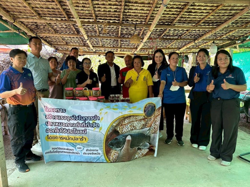 นอกจากนี้ สำนักงานประมงจังหวัดยังสานต่อ โครงการกองทุนกากชา เพื่อลดค่าใช้จ่ายให้กับเกษตรกรในการจัดการปลาหมอคางดำในบ่อเลี้ยงสัตว์น้ำ รวมทั้งการส่งเสริมวิสาหกิจชุมชน นำปลาที่จับได้มาหมักเป็นปลาร้า 2 กลุ่ม ได้แก่ กลุ่มวิสาหกิจชุมชนเกษตรวิถีใหม่ร่วมใจพัฒนาบ้านคลองตาจ่า ต.บางยี่รงค์ และองค์กรชุมชนประมงท้องถิ่น กลุ่มตกกุ้งบางพรม ต.บางพรม รวม 20,000 กิโลกรัม ซึ่งเกษตรกรยังนำมาต่อยอดพัฒนาเป็นผลิตภัณฑ์ต่างๆ จำหน่ายสร้างรายได้ให้ชุมชน เช่น แจ๋วบอง น้ำพริกเผาปลาร้า ปลาส้ม ปลาร้าด่วน เป็นต้น