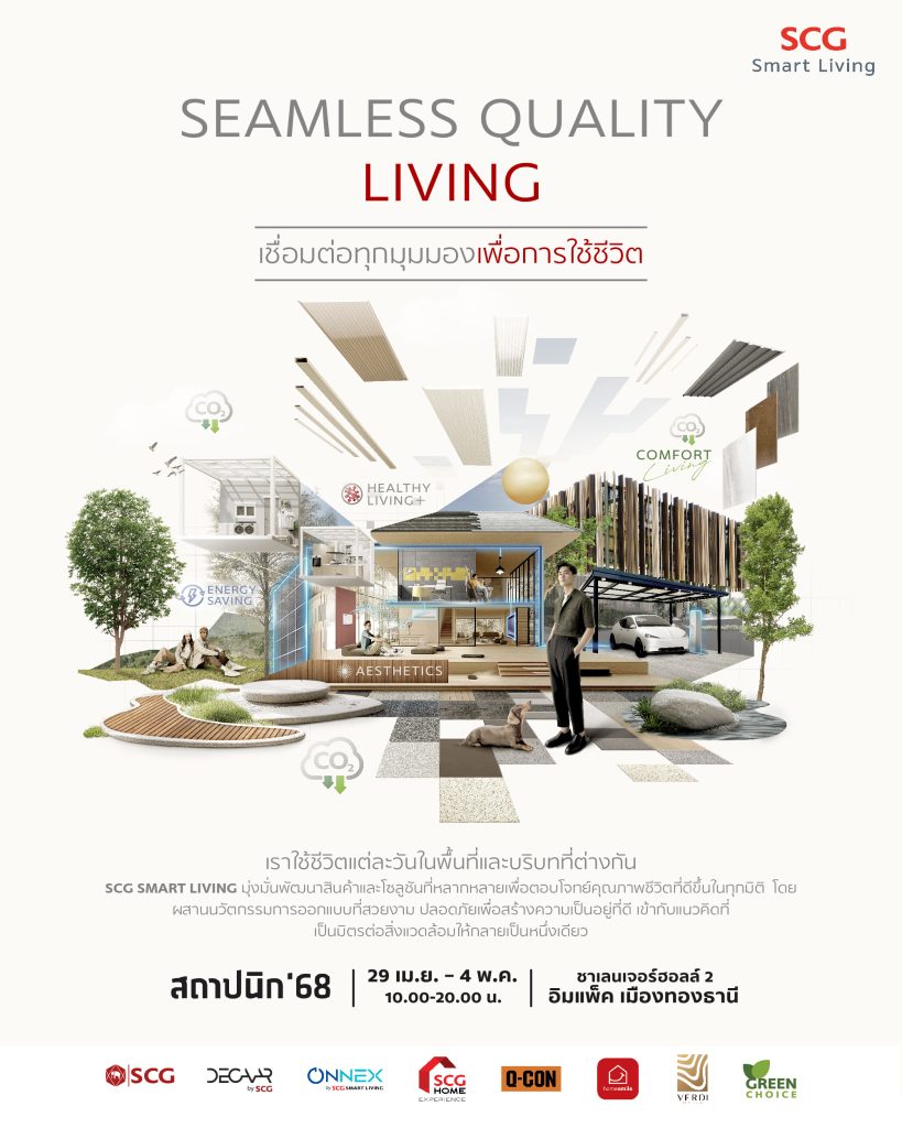 เอสซีจี สมาร์ทลีฟวิงจัดเต็มโชว์นวัตกรรมสินค้าและโซลูชันคาร์บอนค่ำตอบโจทย์บ้านอาคาร และสิ่งปลูกสร้างรักษ์โลก ในงานสถาปนิก’68 ภายใต้แนวคิด “Seamless Quality Living” ยกระดับคุณภาพการอยู่อาศัยผสมผสานแนวคิดเป็นมิตรต่อสิ่งแวดล้อม ผ่านโปรเจค Waste to Construction โดยนำวัสดุเหลือใช้กลับมาเพิ่มมูลค่า ลดคาร์บอนฟุตพริ้นท์ และลดพลังงานในกระบวนการผลิต ตอกย้ำผู้นำวัสดุก่อสร้างคาร์บอนต่ำ (Low Carbon Materials) กับการใช้เทคโนโลยีที่ช่วยประหยัดพลังงาน สะอาด แข็งแรงปลอดภัย และยั่งยืนไปพร้อมๆ กัน