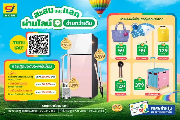 ซีเจ มอร์ (CJ MORE) ชวนลูกค้าออกเดินทางสู่ดินแดนแห่งสีสันไปกับ แคมเปญ “ซีเจ มอร์ เรนโบว์แลนด์ ภารกิจล่าเหรียญสายรุ้ง” ที่ไม่ได้มีแค่ความสนุก แต่ยังมาพร้อมความคุ้มค่าแบบจัดเต็มตลอดแคมเปญให้ลูกค้าสมาชิกสบายการ์ดทุกคน ได้ช้อปสะสมเหรียญสายรุ้ง เพื่อแลกเป็นของพรีเมียมสุดพิเศษ ที่คัดมาให้แบบ จึ้ง! จนอยากสะสมให้ครบทุกแบบ อาทิ กระเป๋าผ้าสุดคิวท์ ร่มเปลี่ยนสีได้ หรือพัดลมมือถือ ไปจนถึงรางวัลใหญ่สำหรับนักล่าเหรียญตัวยง ได้แก่ เครื่องฟอกอากาศ เครื่องหนีบผม จาก Dyson และตู้เย็น Samsung Bespoke นอกจากนี้ ยังอัปเกรดการสะสมและแลกของพรีเมียมให้ง่ายและสะดวกสบายกว่าเดิม ผ่าน LINE Official Account @CJMORE ตั้งแต่วันที่ 25 เมษายน – 30 มิถุนายน 2568 นี้ ที่ซีเจ มอร์ ทุกสาขา