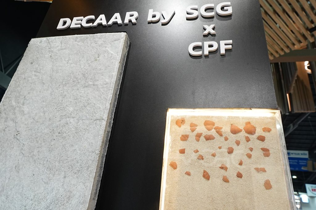 มิติใหม่ของวัสดุตกแต่งจาก “วัสดุเหลือใช้” นำมาสร้างให้เกิด “คุณค่า” ภายใต้แนวคิด Turn Waste to Value โดยร่วมมือกับองค์กรชั้นนำ อาทิ ปตท., แสนสิริ, HomePro, CPF และบริษัทออกแบบ A49 ในการนำเอาเศษวัสดุจากอุตสาหกรรมและชุมชนต่างๆ มาต่อยอดและผลิตเป็นนวัตกรรมวัสดุตกแต่งภูมิทัศน์ภายนอก (Outdoor living Solution และฟาซาด (Facade Solution) ดีไซน์สวย แข็งแรง ทนทาน และรักษ์โลก อาทิ กระเบื้องคอนกรีตปูพื้น รุ่นคอมฟอร์ท ที่มีส่วนผสมจากเปลือกไข่ไก่บดอัดและวัสดุ รีไซเคิลจากโรงงานจากเอสซีจี พร้อมด้วยเทคโนโลยี HeatSync ช่วยทำให้ระบายความร้อนและดูดซับความร้อนได้ดีกว่ากระเบื้องทั่วไป