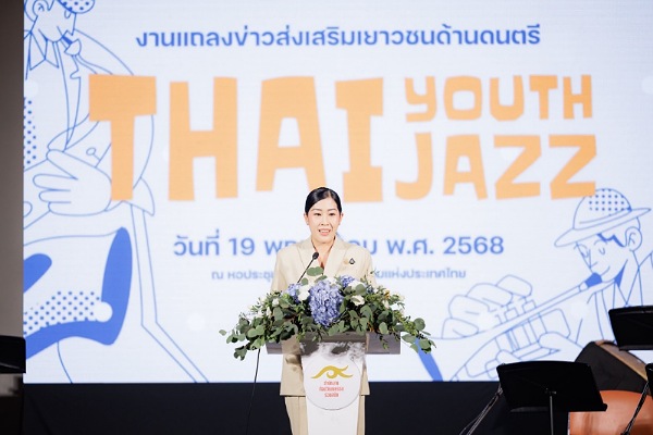วันที่ 19 พฤษภาคม 2568 นางสาวสุดาวรรณ หวังศุภกิจโกศล รัฐมนตรีว่าการกระทรวงวัฒนธรรม มอบหมายให้นางสาวพลอย ธนิกุล ผู้ช่วยรัฐมนตรีประจำกระทรวงวัฒนธรรม เป็นประธานการแถลงข่าวโครงการส่งเสริมเยาวชนด้านดนตรี Thai Youth Jazz ประจำปีงบประมาณ พ.ศ.2568 โดยมีนายประสพ เรียงเงิน ปลัดกระทรวงวัฒนธรรม นางเกษร กำเหนิดเพ็ชร รองผู้อำนวยการสำนักงานศิลปวัฒนธรรมร่วมสมัย (สศร.) รักษาราชการแทนผู้อำนวยการสศร. กระทรวงวัฒนธรรม ผู้บริหารกระทรวงวัฒนธรรม ที่ปรึกษาและคณะทำงานโครงการ นายวิรัช อยู่ถาวร ศิลปินแห่งชาติ สาขาศิลปะการแสดง (ดนตรีสากล) พ.ศ. 2560 ศาสตราจารย์ ดร. ณรงค์ฤทธิ์ ธรรมบุตร ศิลปินแห่งชาติ สาขาศิลปะการแสดง ดนตรีสากล – ประพันธ์เพลงคลาสสิก) พ.ศ. 2564 รองศาสตราจารย์ ดร. เด่น อยู่ประเสริฐ ศิลปินศิลปาธร และคณบดีวิทยาลัยดนตรี มหาวิทยาลัยรังสิต ดร. ณรงค์ ปรางค์เจริญ ศิลปินศิลปาธร และคณบดีวิทยาลัยดุริยางคศิลป์ มหาวิทยาลัยมหิดล นายดำริห์ บรรณวิทยกิจ ศิลปินศิลปาธร และอาจารย์ประจำคณะดุริยางคศาสตร์ มหาวิทยาลัยศิลปากร นายกิตณรงค์ ติระขจร ประธานเจ้าหน้าที่บริหารสายงานสนับสนุนธุรกิจ บริษัท เคพีเอ็น อะคาเดมี จำกัด ผู้แทนคณบดีคณะดุริยางคศาสตร์ มหาวิทยาลัยศิลปากร พร้อมด้วยศิลปินศิลปาธรสาขาดนตรี นายณัฐ ยนตรรักษ์ นายวานิช โปตะวนิช นายพงศ์พรหม สนิทวงศ์ ณ อยุธยา ร้อยเอกสมนึก แสงอรุณ และผู้บริหารของสถาบันการศึกษา ดร.อรรถวิท อุไรรัตน์ อธิการบดีมหาวิทยาลัยรังสิต นายแมนลักษณ์ ทุมกานนท์ (โซ่ วง ETC ) ข้าราชการและเจ้าหน้าที่สศร. และคณะนักดนตรีวง RSU Jazz Orchestra จากวิทยาลัยดนตรี มหาวิทยาลัยรังสิต เข้าร่วมงาน ณ หอประชุมเล็ก ศูนย์วัฒนธรรมแห่งประเทศไทย