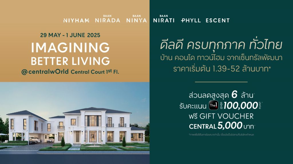 บริษัท เซ็นทรัลพัฒนา จำกัด (มหาชน) ผู้นำเบอร์หนึ่งอสังหาริมทรัพย์ไทยเพื่อความยั่งยืนภายใต้วิสัยทัศน์ Imagining better futures for all และผู้พัฒนาธุรกิจ ได้แก่ ศูนย์การค้าเซ็นทรัล, ที่พักอาศัย, อาคารสำนักงาน และโรงแรมทั่วประเทศ เผย Central Pattana Residence เติบโตต่อเนื่องตลอด 10 ปี เป็นหนึ่งในธุรกิจหลักที่สร้างความแข็งแกร่งให้กับโมเดล Retail-Led Mixed-Use Development ของเซ็นทรัลพัฒนา โดยปี 2568 เดินหน้าเปิดตัวโครงการใหม่ทั้งสิ้น 9 โครงการทั้งแนวราบและแนวสูง มูลค่ารวม 16,000 ล้านบาท นำโดยโครงการบ้านลักชัวรี่ “บ้านนิรดา แจ้งวัฒนะ-ชัยพฤกษ์” เจาะทำเลเมืองขยาย ตอบรับดีมานด์ที่อยู่อาศัยระดับบน พร้อมเตรียมเปิดตัวโครงการทั้งบ้านและคอนโดฯ ระดับ Super Premium ในโครงการมิกซ์ยูสเซ็นทรัล กระบี่ และต่อยอดความสำเร็จเตรียมเปิดตัวคอนโดฯ PHYLL Phuket 2 รับแผนขยาย Luxury Zone ของเซ็นทรัล ภูเก็ต พร้อมพบกับ Better Deal ยิ่งใหญ่แห่งปีในงาน IMAGINING BETTER LIVING ระหว่างวันที่ 29 พ.ค – 1 มิ.ย. 68 ที่เซ็นทรัลเวิลด์ Central Court ชั้น 1