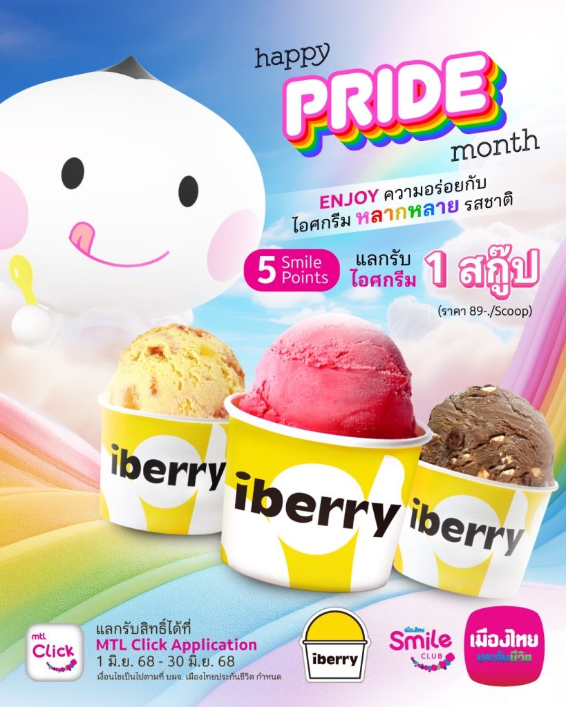 บริษัท เมืองไทยประกันชีวิต จำกัด (มหาชน) โดย “เมืองไทยสไมล์คลับ” เดินหน้าส่งมอบความสุขและรอยยิ้มให้สมาชิกเมืองไทยสไมล์คลับ ร่วมเฉลิมฉลองเทศกาล Pride Month 2025 สนับสนุนความเท่าเทียมและความหลากหลาย ล่าสุดจับมือ iberry เสิร์ฟความสุขให้สมาชิกเมืองไทยสไมล์คลับ รับความอร่อยจากไอศกรีมโฮมเมดฉ่ำชื่นใจตลอดเดือนมิถุนายน 2568 นี้