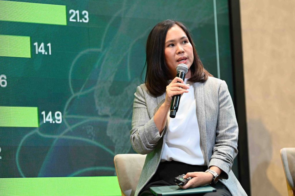 ดร.กฤตย์ สีตะธนี ผู้ช่วยกรรมการผู้จัดการ บริษัท ศูนย์วิจัยกสิกรไทย จำกัด ให้ข้อมูลว่ากิจกรรมด้าน ESG ของภาคเอกชนไทยก็ชะลอลงเช่นกัน ท่ามกลางหลายปัจจัยลบ การออกหุ้นกู้ Sustainable Finance ลดลง โดยส่วนหนึ่งเปลี่ยนมาเป็นการใช้บริการสินเชื่อสีเขียวจากธนาคารพาณิชย์ ที่ข้อมูลเป้าหมายการปล่อยสินเชื่อสีเขียวในปีนี้ จะยังคงขยายตัวค่อนข้างสูง โดยกลุ่มที่ยังระดมทุนอยู่เน้นไปที่ธุรกิจรายใหญ่ผ่านโครงการ Project Finance ที่มีแผนการระดมทุนอยู่แล้ว ขณะที่ธุรกิจเอสเอ็มอีคงเลือกชะลอแผนไปก่อน หรือเน้นลงทุนในกิจกรรมที่เกี่ยวกับ