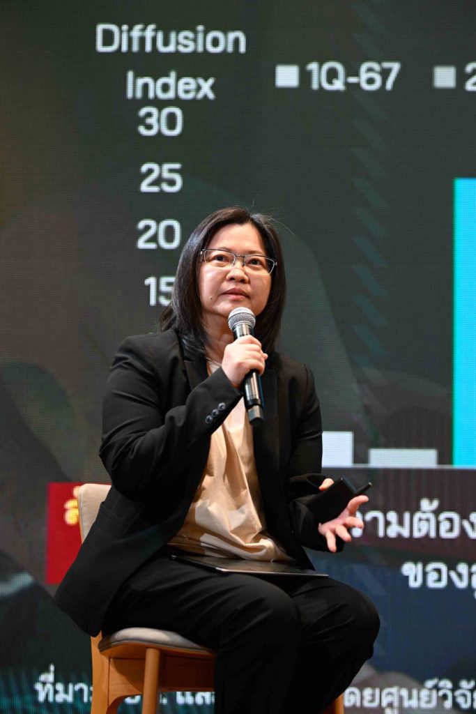 นางสาวณัฐพร ตรีรัตน์ศิริกุล รองกรรมการผู้จัดการ บริษัท ศูนย์วิจัยกสิกรไทย จำกัด เปิดเผยว่า มาตรการภาษีนำเข้าของสหรัฐฯ หลังการชะลอสิ้นสุดลงในวันที่ 9 กรกฎาคม 2568 ยังมีความไม่แน่นอนสูงทำให้ศูนย์วิจัยกสิกรไทยมองเศรษฐกิจไทยยังคงเติบโตที่ 1.4% และเศรษฐกิจไทยในช่วงครึ่งหลังของปี 2568 ยังมีความเสี่ยงที่จะเกิดภาวะถดถอยทางเทคนิค อย่างไรก็ตาม หากอัตราภาษีนำเข้าสหรัฐฯ ในหลายประเทศยังคงไว้ที่ระดับ 10% ตลอดทั้งปี คาดว่าการส่งออกไทยจะขยายตัวได้ที่ 0.5% และเศรษฐกิจไทยจะมีแนวโน้มเติบโตได้ 1.8%