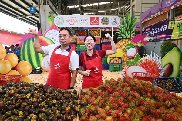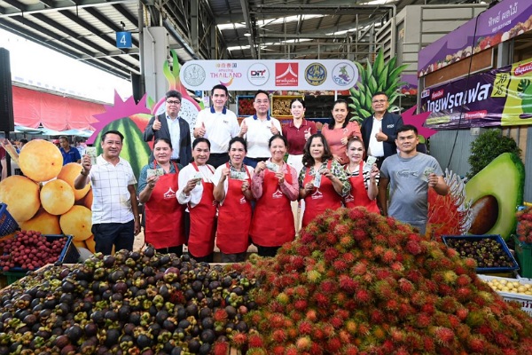 นายวิทยากร มณีเนตร อธิบดีกรมการค้าภายใน นายสมคิด จันทมฤก ผู้ว่าราชการจังหวัดปทุมธานี และนางสาวปณาลี ภัทรประสิทธิ์ ผู้ช่วยกรรมการผู้จัดการ ตลาดสี่มุมเมือง ร่วมเปิดเทศกาล “สี่มุมเมือง ไทยฟรุตเฟส 2025” อย่างเป็นทางการ ซึ่งเป็นความร่วมมือระหว่างตลาดสี่มุมเมืองกับภาครัฐ ประกอบด้วย กรมการค้าภายใน กระทรวงพาณิชย์ การท่องเที่ยวแห่งประเทศไทย (ททท.) และจังหวัดปทุมธานี เพื่อสร้างโอกาสทางการค้าและยกระดับรายได้ให้เกษตรกรไทยอย่างยั่งยืน ณ ตลาดสี่มุมเมือง จังหวัดปทุมธานี เมื่อวันที่ 12 มิถุนายน 2568 ภายในงานจำหน่ายผลไม้ไทยคุณภาพระดับประเทศ ทั้งผลไม้ฤดูกาลระยะสั้นจากภาคตะวันออกและภาคใต้ ผลไม้ป่า และผลไม้ไทยโบราณที่หายาก ตลอดจนผลไม้เศรษฐกิจพันธุ์ใหม่ เช่น ฝรั่งหงเปาสือ และเสาวรสหวาน ซึ่งล้วนสะท้อนอัตลักษณ์ทางรสชาติและศักยภาพของสวนผลไม้ไทย