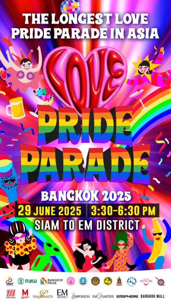 ก่อนส่งท้าย Pride Month อย่างยิ่งใหญ่ด้วย LOVE PRIDE ♡ PARADE ในวันอาทิตย์ที่ 29 มิถุนายน 2568 โดยปีนี้จัดใหญ่อลังการอย่างที่ไม่เคยมีมาก่อน เป็นขบวนพาเหรดสีรุ้งที่ยาวที่สุดในเอเชีย ในคอนเซ็ปต์ “Spectrum Forward : Power of Creation” มุ่งมั่นขับเคลื่อนอนาคตด้วยพลังแห่งความสร้างสรรค์ ตระการตากับขบวนรถเทรลเลอร์จากภาครัฐและภาคเอกชนที่ร่วมจัดงาน ร่วมสร้างสีสันด้วยขบวนรถซูเปอร์คาร์, รถเปิดประทุน, รถมอเตอร์ไซค์ และรถตุ๊กตุ๊ก พร้อมด้วยเหล่าศิลปิน, ดารา, นักแสดง, นางงาม, กลุ่มคนรักสัตว์, คู่สมรสเท่าเทียม และเซเลบริตี้จากทุกแวดวงสังคมที่จะยกขบวนมาร่วมฉลอง ตลอดระยะทาง 6 กิโลเมตร จากสนามกีฬาแห่งชาติ ศุภชลาศัย ไปตามถนนพระราม 1 ผ่านย่านปทุมวัน, ย่านสยาม, ย่านราชประสงค์, ย่านเพลินจิต, ย่านอโศก, ย่านสุขุมวิท และสิ้นสุดที่อุทยานเบญจสิริ