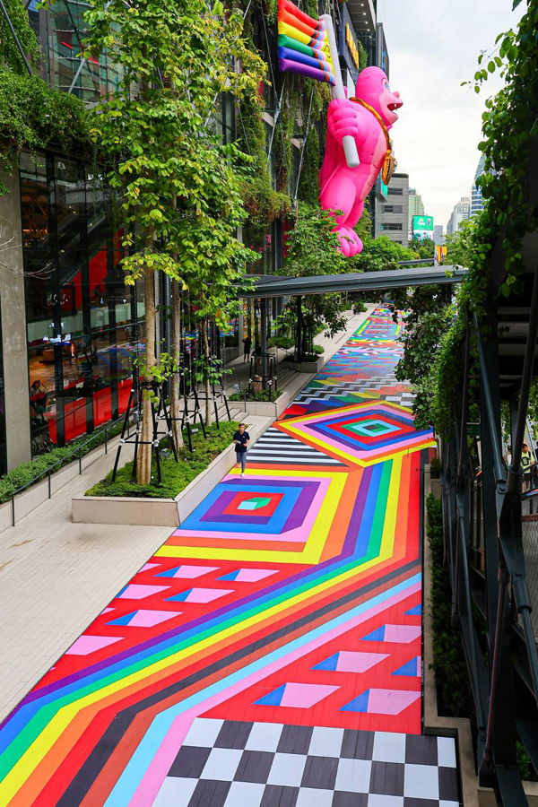 ไม่เพียงเท่านั้น เอ็ม ดิสทริค ยังตกแต่งศูนย์การค้าให้กลายเป็นดินแดนแห่งสีสันและความภาคภูมิใจ ภายใต้ธีม PEACE, LOVE และ UNITY โดยมีจุดเด่นเป็น Installation Art สุดอลังการ อาทิ งานศิลปะขนาดใหญ่รูปมือโอบอุ้มหัวใจที่ตกแต่งด้วยสีของธงไพรด์อย่างสวยงาม ด้านหน้าศูนย์การค้าเอ็มควอเทียร์ และคิงคองสีชมพูขนาดยักษ์ถือธงไพรด์โบกสะบัดอย่างภาคภูมิใจ ที่บริเวณกระจกด้านหน้าศูนย์การค้าเอ็มสเฟียร์ รวมถึงการแต่งแต้ม Sphere Street ให้เป็นถนนที่เต็มไปด้วยสีสันแห่งไพรด์อย่างสวยงาม ตลอดทั้งเดือนมิถุนายนนี้