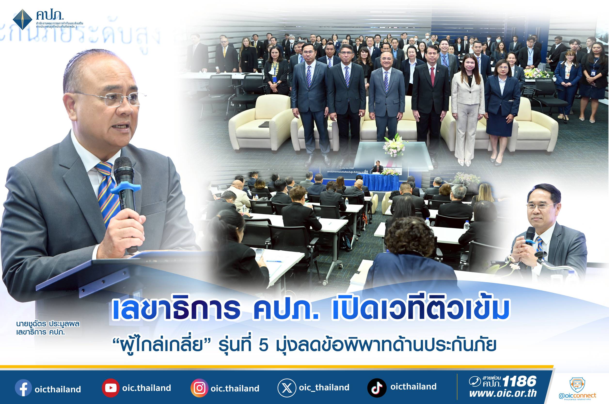 นายชูฉัตร ประมูลผล เลขาธิการคณะกรรมการกำกับและส่งเสริมการประกอบธุรกิจประกันภัย (เลขาธิการ คปภ.) เป็นประธานกล่าวเปิดงาน “ปฐมนิเทศผู้ชำนาญการ (บุคคลภายนอก) เพื่อทำหน้าที่ผู้ไกล่เกลี่ยข้อพิพาท ด้านการประกันภัย สำนักงาน คปภ. รุ่นที่ 5” โดยเลขาธิการ คปภ. ได้กล่าวว่า การไกล่เกลี่ยข้อพิพาทด้านการประกันภัยเป็นกระบวนการสำคัญที่สำนักงาน คปภ. ได้ดำเนินการขึ้นเพื่อเพิ่มประสิทธิภาพในการคุ้มครองสิทธิประโยชน์ของผู้เอาประกันภัยและประชาชน และเพิ่มทางเลือกสำหรับประชาชนในการระงับข้อพิพาทด้านการประกันภัยโดยไม่มีค่าใช้จ่าย ซึ่งช่วยให้คู่กรณีสามารถตกลงยุติข้อพิพาทได้อย่างรวดเร็ว ส่งผลให้คู่กรณีทุกฝ่ายได้รับความพึงพอใจ ดังนั้น ผู้ไกล่เกลี่ยจึงถือเป็นกำลังสำคัญที่จะร่วมขับเคลื่อนกระบวนการยุติธรรมทางเลือกให้เกิดประโยชน์แก่ประเทศชาติและประชาชน