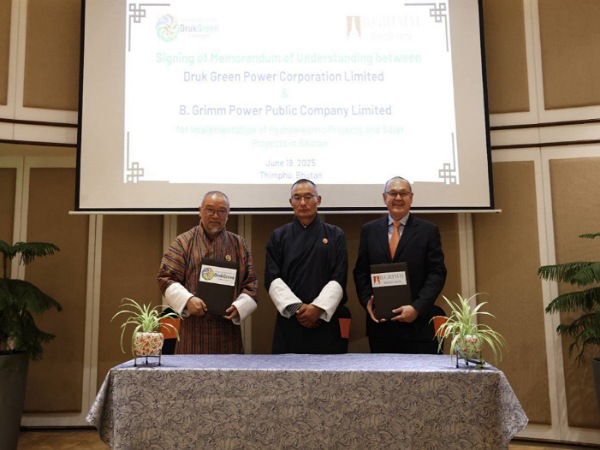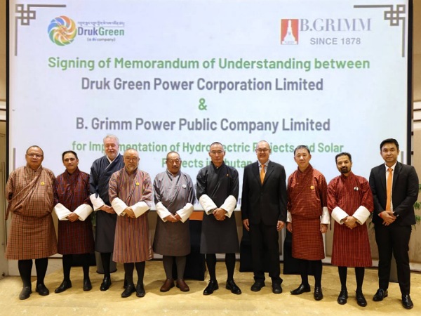 บริษัท บี.กริม เพาเวอร์ จำกัด (มหาชน) และ บริษัท Druk Green Power Corporation (DGPC) ได้ลงนามบันทึกข้อตกลงความร่วมมือ (MoU) เพื่อร่วมกันพัฒนาโครงการพลังน้ำและพลังงานแสงอาทิตย์ราชอาณาจักรภูฏาน พิธีลงนามจัดขึ้นที่กรุงทิมพู โดยมี ฯพณฯ นายกรัฐมนตรีเชอริง โทแบย์ เป็นประธานในพิธี พร้อมด้วยรัฐมนตรีว่าการกระทรวงพลังงานและทรัพยากรธรรมชาติของภูฏาน กงสุลใหญ่ไทยประจำภูฏาน ผู้บริหารระดับสูงจากบี.กริม เพาเวอร์ และตัวแทนจากรัฐบาลภูฏานร่วมเป็นสักขีพยาน