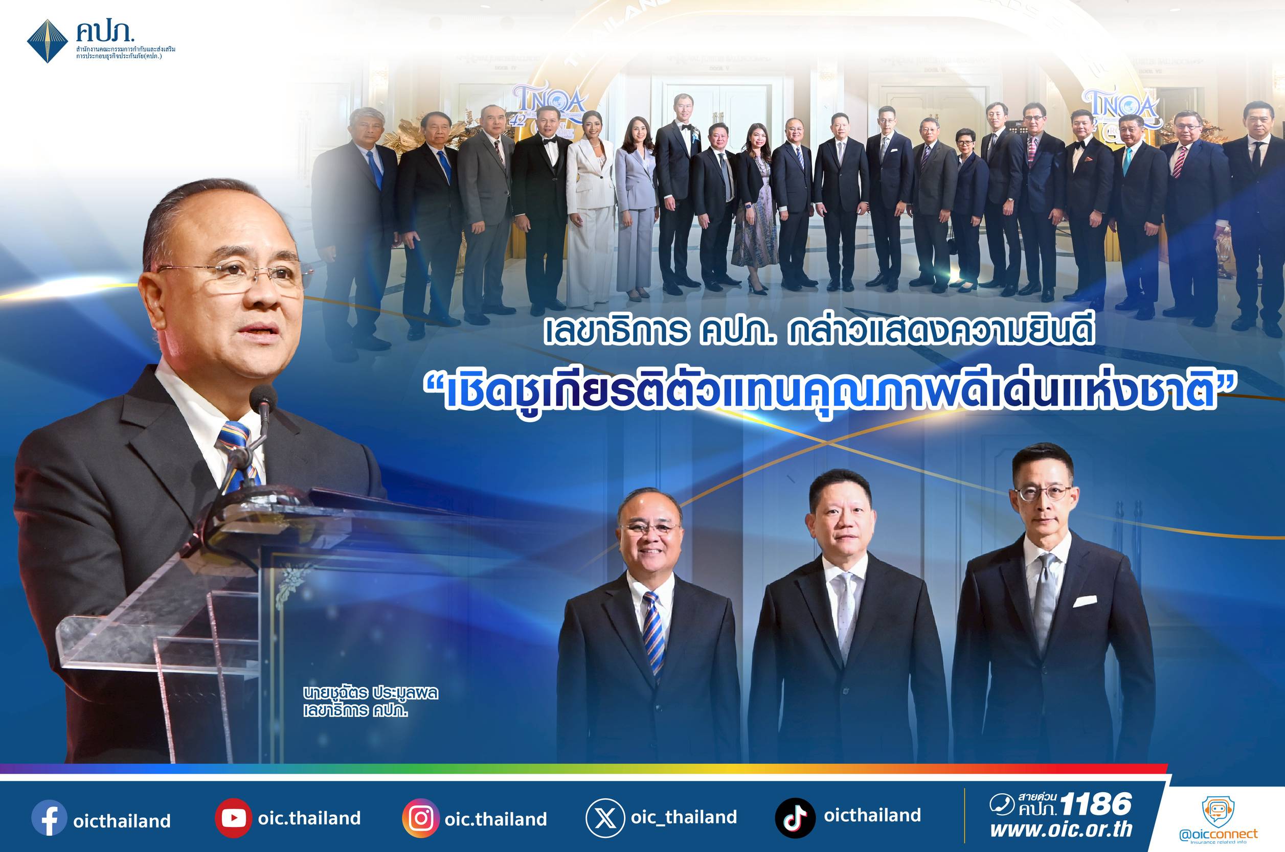 เลขาธิการ คปภ. กล่าวแสดงความยินดีและมอบรางวัลโล่กิตติคุณ 15 ปี และ 10 ปี ในงานพิธีมอบรางวัลตัวแทนคุณภาพดีเด่นแห่งชาติ ครั้งที่ 42 ประจำปี 2568 ชี้ “ตัวแทนประกันชีวิต” ด่านแรกเชื่อมโยงระบบประกันภัยสู่ประชาชน มีบทบาทสำคัญ ในการส่งเสริมให้ประชาชนเข้าถึงระบบประกันภัยได้อย่างทั่วถึง เน้นย้ำคุณสมบัติตัวแทนที่ดี “ซื่อสัตย์สุจริต-รักษาจรรยาบรรณ- มีคุณธรรมจริยธรรมในวิชาชีพ-ปฏิบัติตามกฎระเบียบอย่างเคร่งครัด” พร้อมพัฒนาความรู้และศักยภาพให้ทันต่อการเปลี่ยนแปลงของโลก มุ่งตอบสนองความต้องการประชาชนอย่างถูกต้องและเหมาะสม