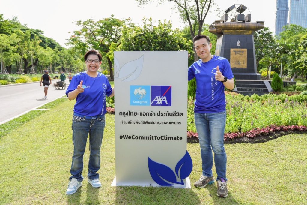 บริษัท กรุงไทย-แอกซ่า ประกันชีวิต จำกัด (มหาชน) ในฐานะ ‘Green Insurer’ หรือผู้นำบริษัทประกันที่ใส่ใจสิ่งแวดล้อม นำโดยคุณณัฐพิสิษฐ์ ครุฑครองชัย ประธานเจ้าหน้าที่บริหาร (คนที่ 8 จากซ้าย แถวที่สาม ) พร้อมด้วยคุณบุปผาวดี โอวรารินท์ ประธานเจ้าหน้าที่บริหาร ฝ่ายการตลาด (คนที่ 7 จากซ้าย แถวที่สาม) จัดกิจกรรมใหญ่ ในสัปดาห์แห่งการทำความดี หรือ “Week for Good” ซึ่งเป็นกิจกรรมที่ทุกบริษัทของแอกซ่าทั่วโลก จัดขึ้นพร้อมกันทุกๆ ปี โดยบริษัทฯ มุ่งเน้นในการให้ความสำคัญกับด้าน Climate Change & Biodiversity โดยในปีนี้จัดขึ้นภายใต้ธีม “มลพิษทางอากาศ”