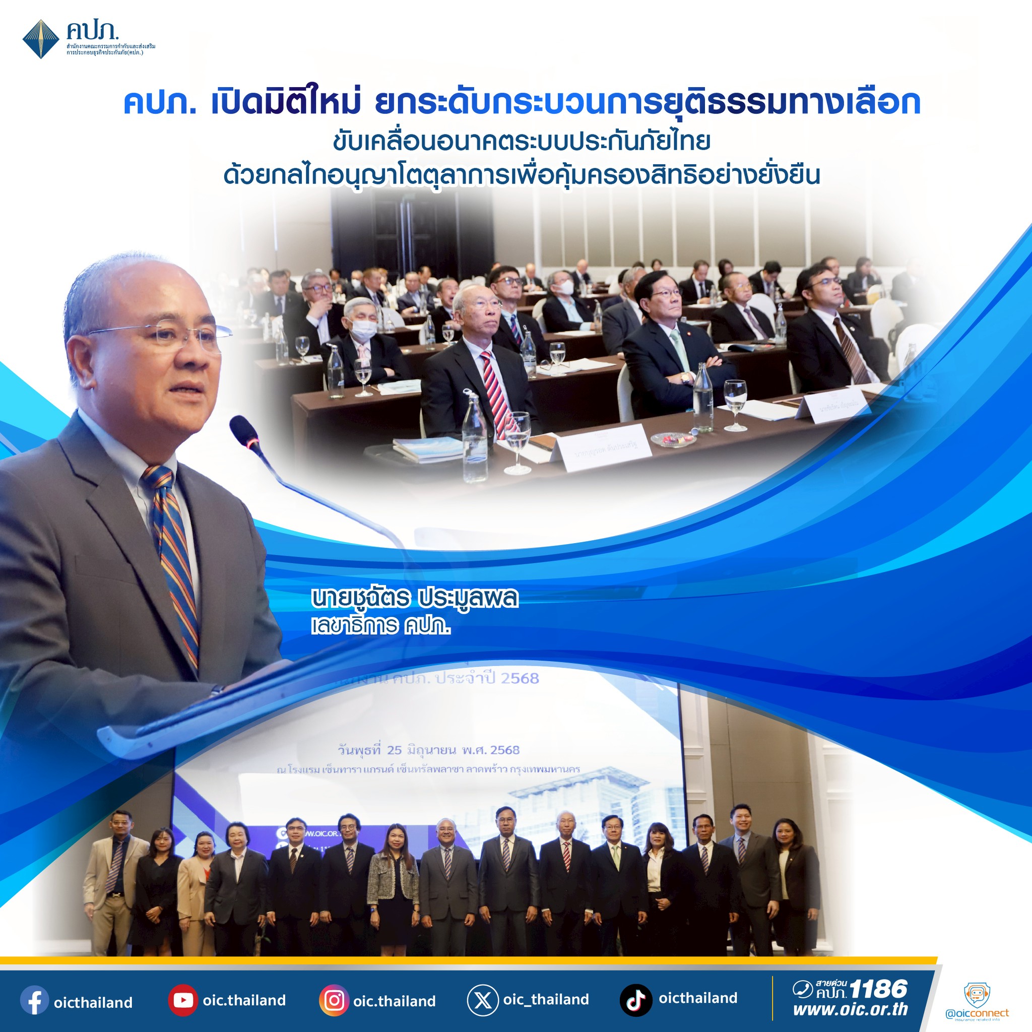 นายชูฉัตร ประมูลผล เลขาธิการคณะกรรมการกำกับและส่งเสริมการประกอบธุรกิจประกันภัย (เลขาธิการ คปภ.) เป็นประธานในพิธีเปิดงานสัมมนาอนุญาโตตุลาการ ประจำปี 2568 ณ โรงแรมเซ็นทารา แกรนด์ เซ็นทรัลพลาซา ลาดพร้าว กรุงเทพมหานคร โดยมีนายคณานุสรณ์ เที่ยงตระกูล ผู้ช่วยเลขาธิการ สายคุ้มครองสิทธิประโยชน์ กล่าวรายงาน