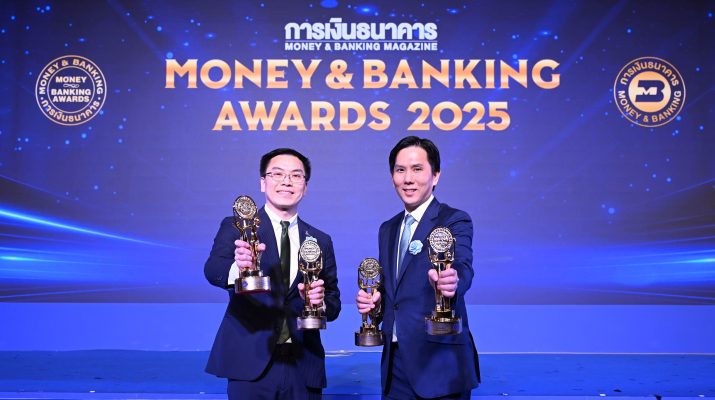ดร.กรินทร์ บุญเลิศวณิชย์ (ซ้าย) รองผู้จัดการใหญ่ ธนาคารกสิกรไทย เป็นผู้แทนธนาคารรับ 3 รางวัลยอดเยี่ยม ได้แก่ รางวัลธนาคารที่มีความโดดเด่นด้านนวัตกรรมทางการเงิน รางวัลธนาคารที่มีบริการยอดเยี่ยมด้านบัตรเครดิต และรางวัล K PLUS แอปพลิเคชันทางการเงินขวัญใจผู้เข้าชมงาน ประจำปี 2568 ซึ่งรางวัลดังกล่าวมาจากผลการสำรวจความคิดเห็นผู้สมัครและขอใช้บริการในงานมหกรรมการเงินประจำปี 2568 ทั่วประเทศ พร้อมด้วยนายฐานันดร โชลิตกุล, CFA (ขวา) Chief Investment Officer บลจ.กสิกรไทย เป็นผู้แทนรับมอบรางวัลกองทุนยอดเยี่ยมแห่งปี 2568 ประเภทกองทุนตราสารหนี้ไทยและต่างประเทศบางส่วน (Fixed Income Fund) ในงาน Money & Banking Awards 2025 จัดโดยวารสารการเงินธนาคาร ณ โรงแรมไฮแอท รีเจนซี กรุงเทพฯ เมื่อเร็วๆ นี้
