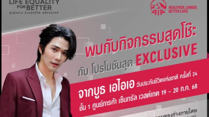 ขอเชิญชวนทุกคนมารับคำแนะนำจากที่ปรึกษาด้านการประกันชีวิต การเงินและสุขภาพ มืออาชีพจากเอไอเอ พร้อมเลือกซื้อผลิตภัณฑ์ประกันสุขภาพและโรคร้ายแรง รวมถึงประกันยูนิต ลิงค์ ที่หลากหลายได้ที่บูธเอไอเอ ในงานวันประกันชีวิตแห่งชาติ ครั้งที่ 24 ในวันเสาร์ที่ 19 และวันอาทิตย์ที่ 20 กรกฎาคม นี้ เพื่อเริ่มต้นวางแผนความมั่นคงและสร้างความมั่งคั่งระยะยาวผ่านผลิตภัณฑ์ประกันชีวิตและสุขภาพ เพื่อสุขภาพและชีวิตที่ดีขึ้นของทุกคน
