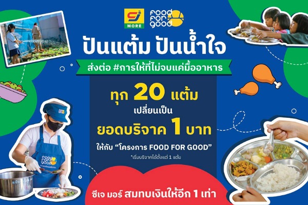 ซีเจ มอร์ (CJ MORE) เดินหน้าสานต่อภารกิจแห่งการให้ ผ่านโครงการ “ปันแต้ม ปันน้ำใจ” โดยร่วมมือกับ มูลนิธิยุวพัฒน์ ให้สมาชิกสบายการ์ดร่วมส่งต่อแต้มสะสมให้กลายเป็นพลังแห่งการเปลี่ยนแปลง ผ่านโครงการ “FOOD FOR GOOD” ซึ่งมุ่งมั่นพัฒนาคุณภาพโภชนาการของเด็กนักเรียนทั่วประเทศ โดยลูกค้าสามารถร่วมบริจาคได้ง่าย ๆ เพียงใช้ 20 แต้มจากบัตรสมาชิกสบายการ์ด เพื่อเปลี่ยนเป็นยอดบริจาค 1 บาท และ ซีเจ มอร์ จะร่วมสมทบทุนให้อีก 1 เท่าทันที เพื่อส่งต่อพลังใจให้ไปได้ไกลและยั่งยืนยิ่งขึ้น