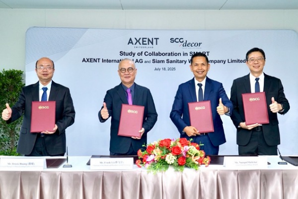 นายนำพล มลิชัย ประธานเจ้าหน้าที่บริหารและกรรมการผู้จัดการใหญ่ บริษัทเอสซีจี เดคคอร์ จำกัด (มหาชน) หรือ SCG Decor (SCGD) ผู้นำในธุรกิจเซรามิก วัสดุตกแต่งพื้นผิวและสุขภัณฑ์ในภูมิภาคอาเซียน (ลำดับที่ 2 จากด้านขวา) นายสิทธิชัย สุขกิจประเสริฐ กรรมการผู้จัดการ บริษัท สยามซานิทารีแวร์ จำกัด หรือ COTTO (ลำดับที่ 1 จากด้านขวา) ร่วมกับ Mr. Frank Li, Chairman of the Board and President, AXENT (ลำดับที่ 2 จากด้านซ้าย) และ Mr. Brook Huang, General Manager of Manufacturing Center, AXENT(ลำดับที่ 1 จากด้านซ้าย) บริษัทชั้นนำจากประเทศสวิตเซอร์แลนด์ ผู้เชี่ยวชาญด้านเทคโนโลยีสุขภัณฑ์อัจฉริยะ ลงนามบันทึกข้อตกลง (MOU) ความร่วมมือศึกษาความเป็นไปได้ในการขับเคลื่อนการเติบโตตลาดสุขภัณฑ์อัจฉริยะครบวงจรในภูมิภาคเอเชียตะวันออกเฉียงใต้ โดยผสานจุดแข็งของเทคโนโลยีระดับโลกจาก AXENT เข้ากับความแข็งแกร่งด้านเครือข่ายการจัดจำหน่าย และความเข้าใจตลาดในระดับภูมิภาคของ SCGD เพื่อยกระดับมาตรฐานสุขภัณฑ์ สร้างการเติบโตในกลุ่มสินค้ามูลค่าสูง และต่อยอดความแข็งแกร่งของแบรนด์สู่ความเป็นผู้นำในตลาดสุขภัณฑ์อัจฉริยะในระดับภูมิภาค รวมไปถึงการร่วมกันแบ่งปันองค์ความรู้ การบริหารช่องทางจัดจำหน่าย และกลยุทธ์ทางการตลาด เพื่อรองรับการขยายตัวของตลาดสุขภัณฑ์ในกลุ่มประเทศอาเซียน