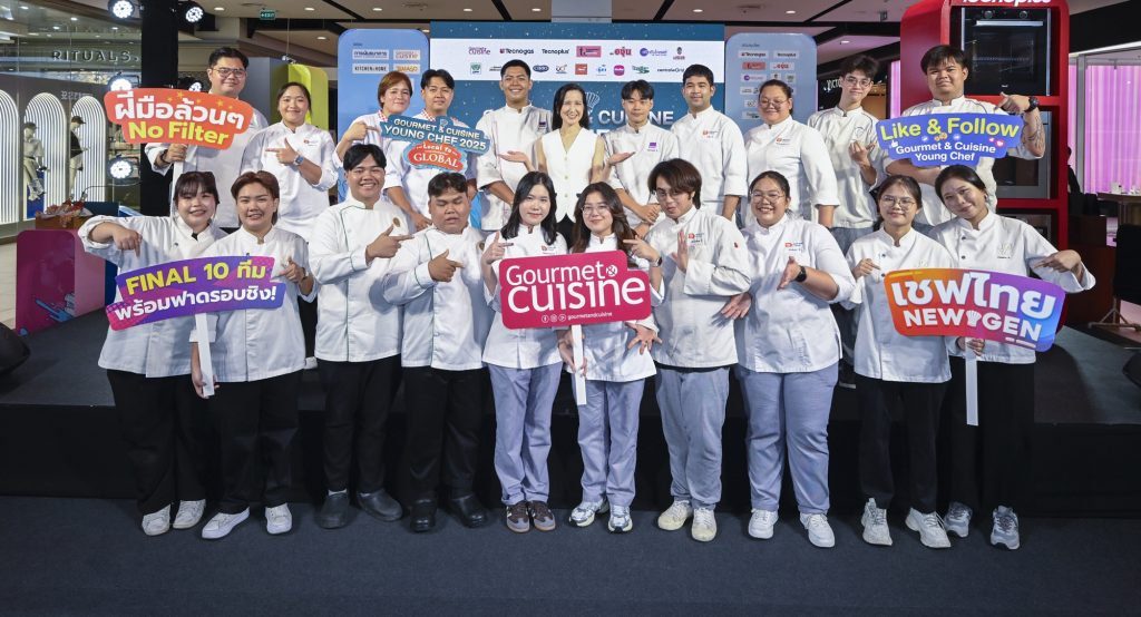พร้อมกันนี้ ภายในงานได้เปิดเผยรายชื่อ 10 ทีมสุดท้าย ที่ผ่านเข้าสู่การแข่งขันรอบชิงชนะเลิศ Gourmet & Cuisine Young Chef 2025 ซึ่งคัดเลือกจากผลงานกว่า 70 ทีมทั่วประเทศ โดยแต่ละทีมมีความโดดเด่นทั้งด้าน ไอเดีย เทคนิค และการตีความแนวคิด “Local to Global – จากรสชาติท้องถิ่นสู่เวทีโลก” ได้อย่างสร้างสรรค์ ได้แก่