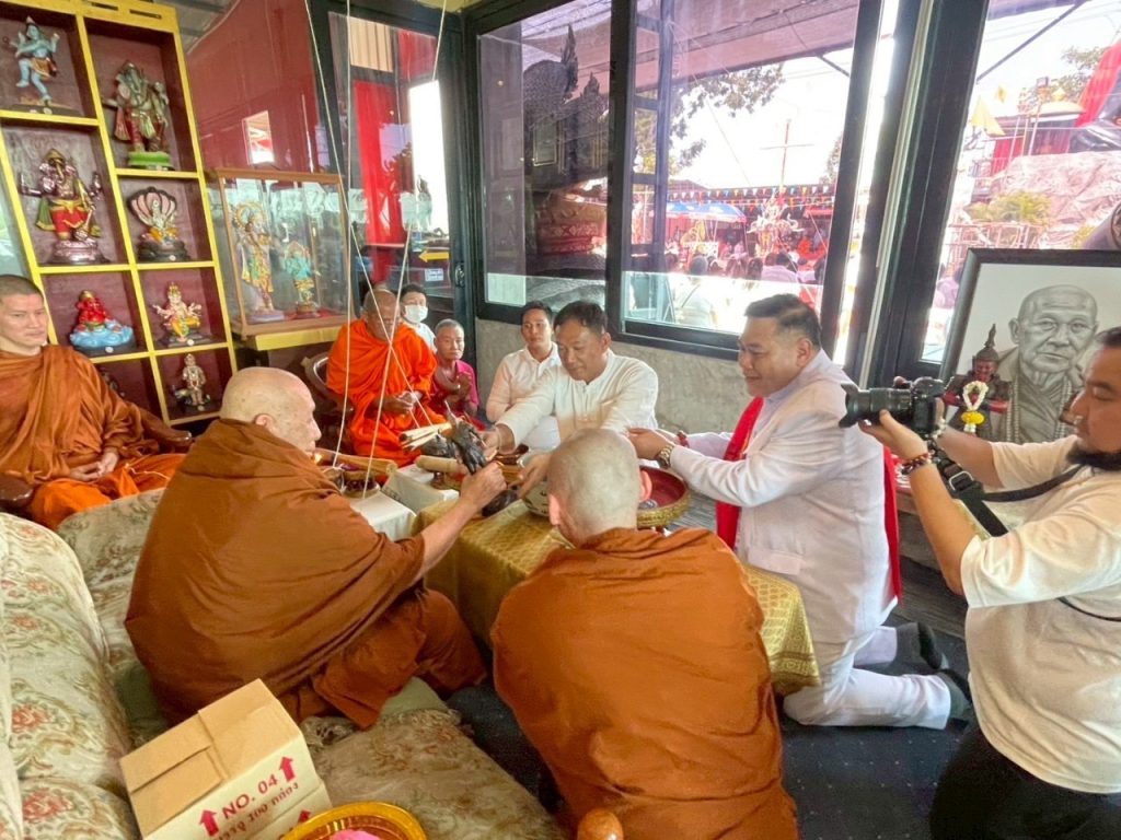 หลวงตาม้า วัดถ้ำเมืองนะ”เมตตา มาพร้อมคณะสงฆ์ และ คลื่นมหาชนร่วมพลังแห่งความศรัทธา มากล้น เต็มลานพิธีบวงสรวงเททอง หล่อ”องค์ท้าวเวสสุวรรณ” สูง 2.59 เมตร(วาระองค์แรก) บังเกิดอาทิตย์ทรงกลด .