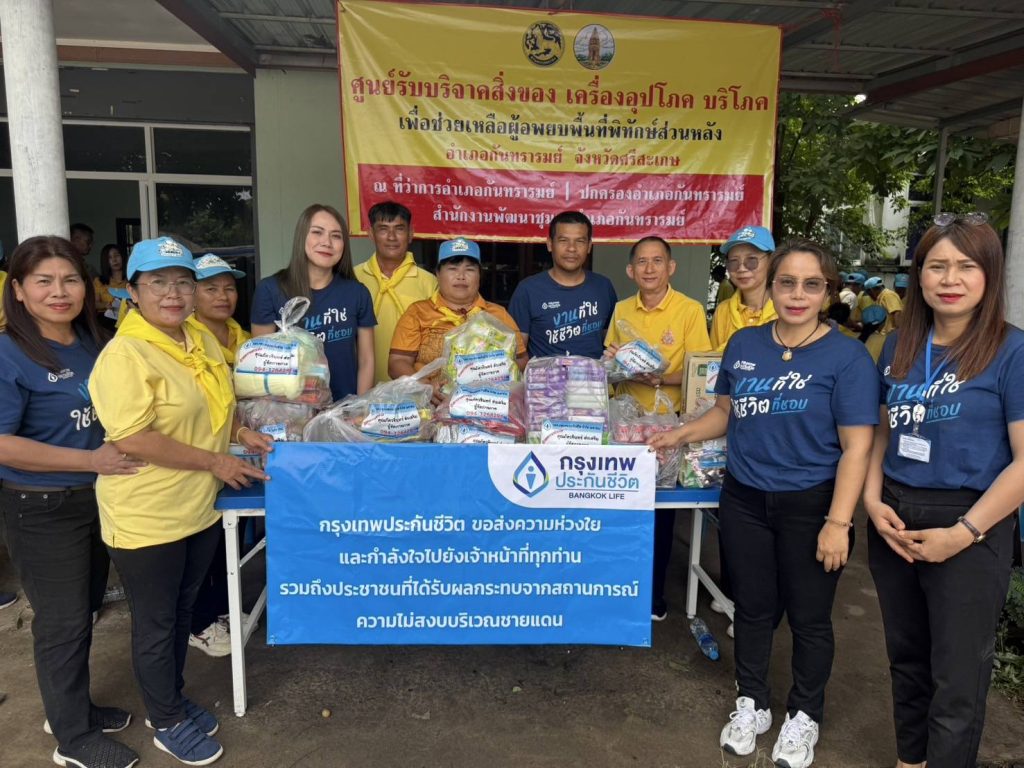 บริษัท กรุงเทพประกันชีวิต จำกัด (มหาชน) ร่วมส่งต่อความใส่ใจต่อสังคม ส่งตัวแทนและพนักงานจิตอาสา ลงพื้นที่มอบถุงยังชีพบรรเทาทุกข์รวมจำนวน 500 ถุง พร้อมทั้ง อาหารพร้อมรับประทาน ให้ทหาร และประชาชนที่ได้รับผลกระทบจากสถานการณ์ชายแดนไทย–กัมพูชา ในพื้นที่ 3 จังหวัดชายแดน ได้แก่ อุบลราชธานี ศรีสะเกษ และสุรินทร์ เพื่อช่วยเหลือและบรรเทาความเดือดร้อนได้อย่างทันท่วงทีและครอบคลุม พร้อมทั้งร่วมส่งกำลังใจ และความห่วงใยจากพนักงานและตัวแทนประกันชีวิต โดยกิจกรรมในครั้งนี้จัดขึ้นภายใต้แนวคิด “ใส่ใจทุกชีวิต” โดยมุ่งเน้นการช่วยเหลือผู้ประสบภัยอย่างต่อเนื่อง และสะท้อนถึงความมุ่งมั่นของกรุงเทพประกันชีวิตในการเป็นบริษัทประกันชีวิตอันดับหนึ่งในด้านความใส่ใจ