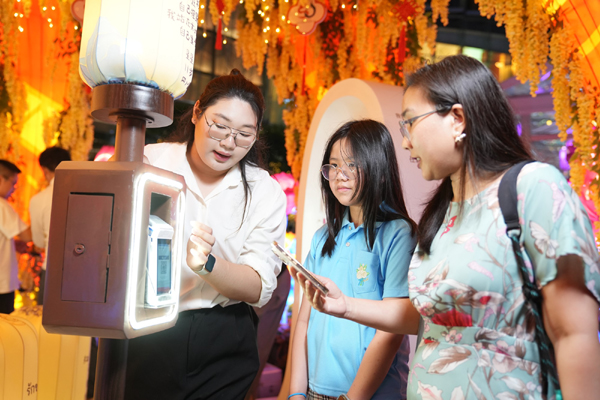 กิจกรรมการกุศล “บทกวีจากเครื่อง POS UnionPay” ภายใต้ธีมโคมไฟ “ดอกไม้แห่งมิตรภาพจีน–ไทย”ซึ่ง เป็นหนึ่งในไฮไลต์สำคัญ โคมไฟขนาดใหญ่สวยงามตระการตาถูกตั้งอยู่กลางพื้นที่จัดงาน รายล้อมด้วยโคมไฟจีนหลากขนาด แต่ละดวงประดับประดาด้วยลวดลายจีนอันเป็นเอกลักษณ์และบทกวีของเด็กๆ จีนและไทยด้วยสองภาษา ออกแบบอย่างวิจิตร จัดวางเป็น “แม่น้ำแห่งบทกวี” ที่ไหลจากทางเข้าไปยังด้านใน สื่อถึงบทกวีจากจีนที่เดินทางข้ามน้ำข้ามทะเลมาถึงไทย บนสายน้ำประดับด้วยโคมไฟ สร้างบรรยากาศอันเปี่ยมไปด้วยกลิ่นอายบทกวี เด็กๆ ไทยอ่านบทกวีของเพื่อนชาวจีนด้วยความสนุกสนาน ขณะที่ผู้เข้าชมสามารถใช้บัตร UnionPay ร่วมบริจาคผ่านเครื่อง POS เพื่อรับสลิปบทกวีสองภาษาจีน-ไทย และหากเข้าร่วมกิจกรรมบันทึกเสียงหลังจากบันทึกการอ่านบทกวีแล้วก็จะได้รับคิวอาร์โค้ด ติดบนการ์ดบทกวีเป็นที่ระลึกพิเศษ โดยรายได้จากการบริจาคทั้งหมดจะมอบให้มูลนิธิสายเด็ก 1387 เพื่อนำไปส่งเสริม พัฒนาชีวิตและการศึกษาของเด็กไทยให้ดีขึ้น